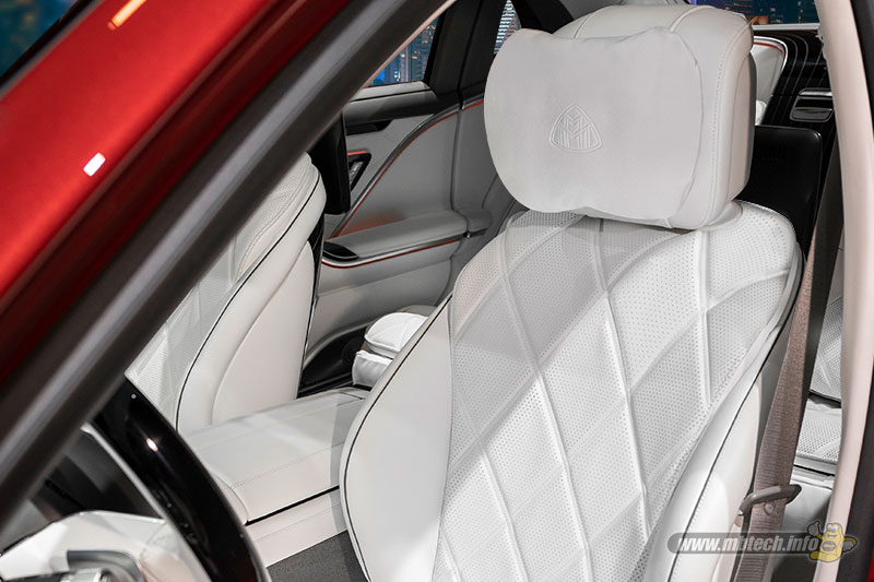 Terakhir varian high class dari Mercedes yaitu Maybach S-Klasse yang punya interior full putih ini. Jelas terpampang desain diamond cut berukuran besar pada area dudukan/sandaran jok, Anda bisa memakai kulit sintetis MBtech Camaro Big Dots berwarna Off-White. Sedangkan permukaan jok dan panel interior lainnya dilapis bahan pelapis senada bertekstur kulit jeruk.