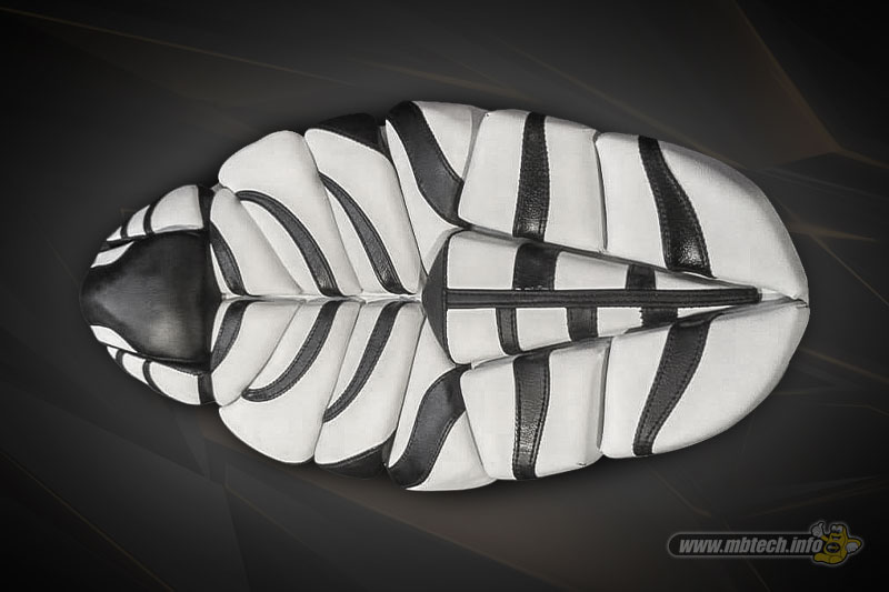 Perpaduan dua warna ini dibentuk dengan pola yang menyerupai tubuh dari harimau putih itu sendiri. Bentuknya juga dibuat berotot dengan ada pemisahan antara busa sehingga membentuk lekukan yang terlihat natural.