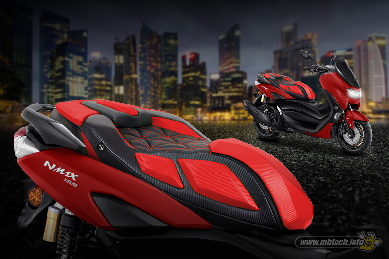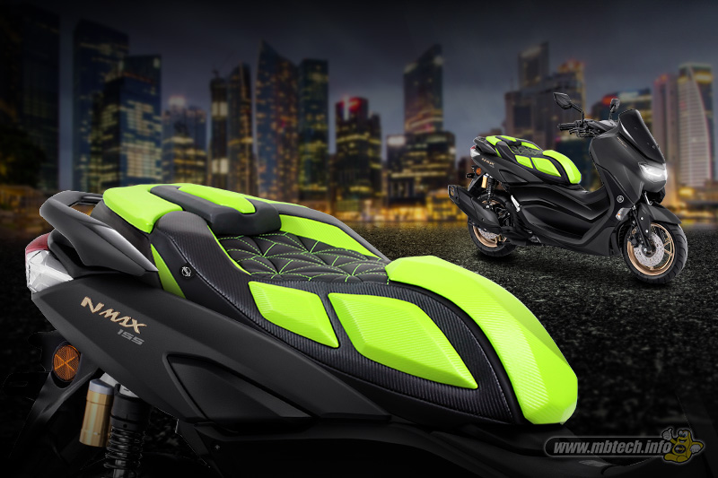 Namun kali ini, Fikki Himawan selaku seatmaker menyesuaikan desain jok tersebut untuk Yamaha NMAX keluaran terbaru. Ia menonjolkan motif 3D triangle pada bagian tengah jok dengan mengaplikasikan warna Black (MB 1001) dari MBtech Premium – Carrera yang diberi jahitan benang berwarna hijau.