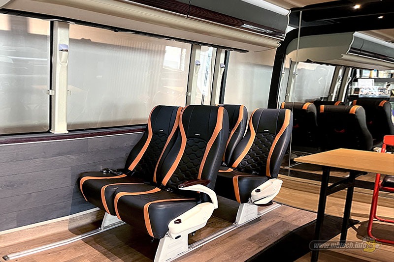 Interior bus dirancang untuk memberikan kenyamanan optimal bagi penumpang, baik untuk perjalanan jarak dekat maupun jarak jauh. Material yang digunakan memiliki karakter tahan panas, tahan gores, serta fleksibel mengikuti desain interior yang kompleks, sehingga mampu menjaga tampilan tetap modern dan profesional dalam penggunaan jangka panjang.