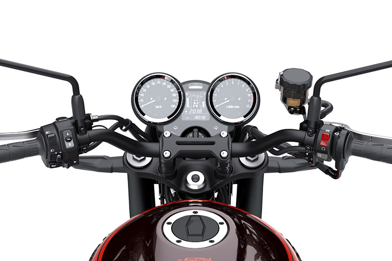 Spesialnya Z900RS edisi ultah 50th ini makin special berkat aksen emas di pelek, emblem bergaya klasik di side panel dan hadir juga pelapis krom ada pegangan (handel) di buritan sasis motor. Bahkan di dekat tutup tangki bbm juga tersemat logo Z50th.