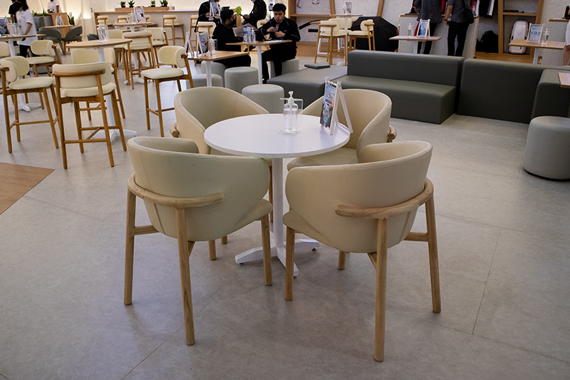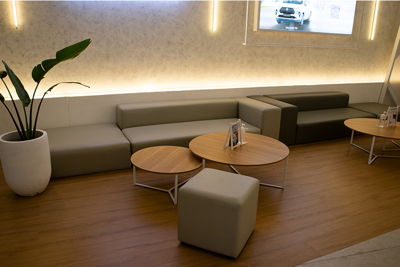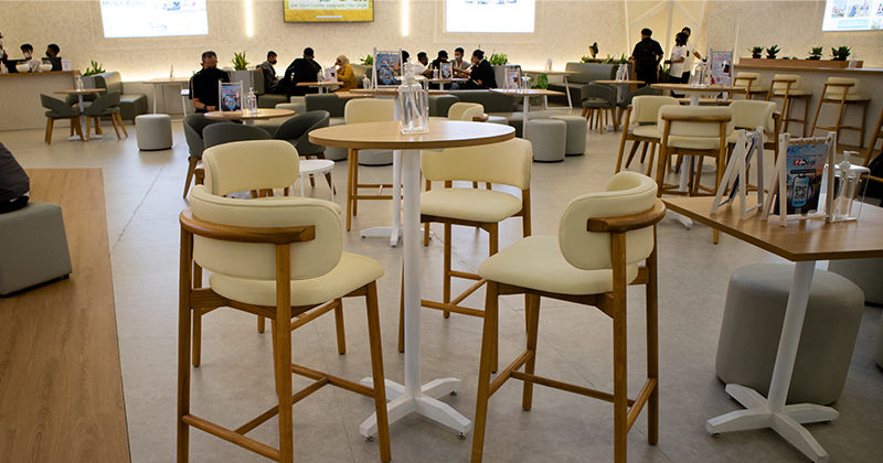 Tampilan lounge Toyota di GIIAS 2022 ini juga bisa menjadi inspirasi bagi yang sedang mencari tampilan café dengan nuansa interior berwarna natural.