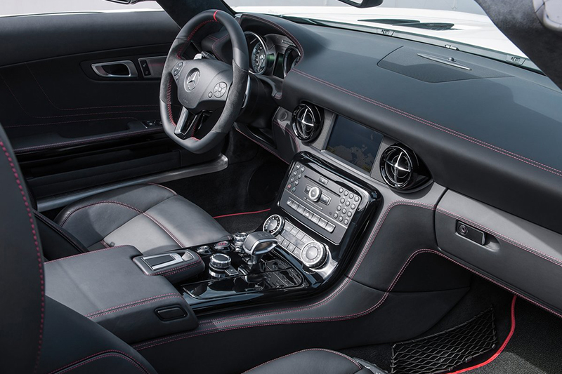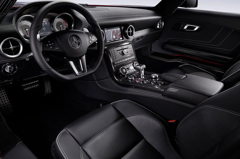 Saat Anda masuk ke dalam SLS AMG, Anda akan langsung dikelilingi oleh suasana mewah dan desain yang terinspirasi oleh pesawat jet. Panel instrumen yang melengkung dan material berkualitas tinggi menciptakan tampilan yang sporty dan elegan.