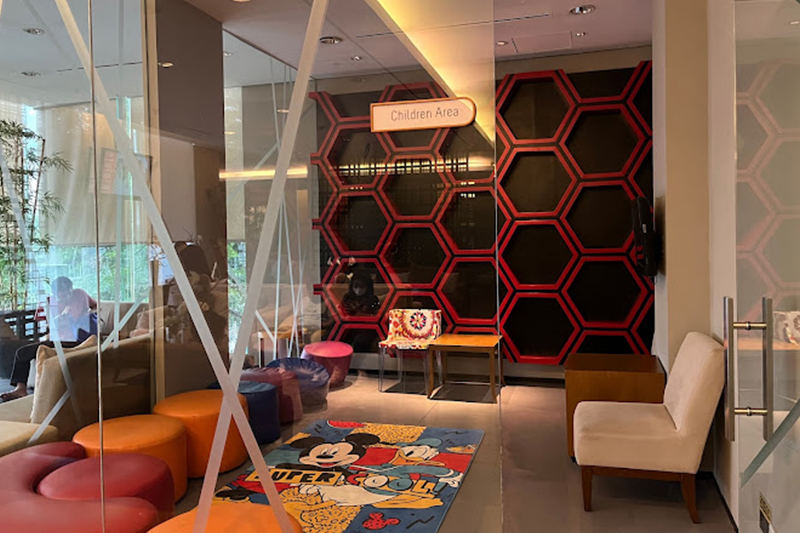 Ruangan cukup luas dengan furniture yang memanjakan. Demi menunjang kenyamanan, tersedia sofa dan kursi yang bisa digunakan untuk menunggu giliran perawatan. Menariknya terdapat ruang anak yang menyediakan puff lucu dengan beragam warna menarik. Selain bunda, si kecil pun tetap nyaman ketika menunggu.