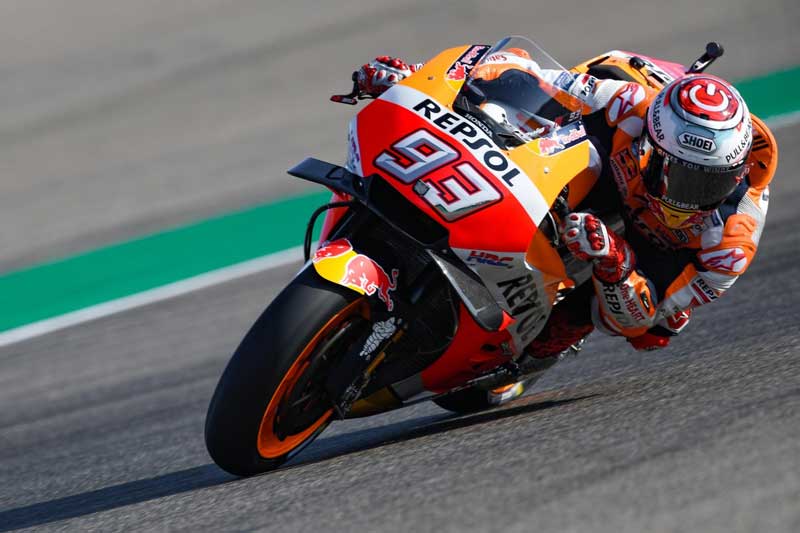 Marquez yang start dari posisi tiga memenangi balapan GP Aragon dengan memberikan perlawanan yang ketat kepada pebalap tim Ducati Andrea Dovizioso di sepanjang balapan.
