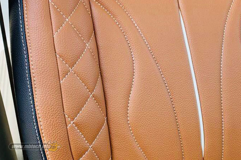 Tampilan jok juga terlihat menawan dengan pola jahitan dan lis warna Off White (MB 9006) pada bagian tengah jok yang dibuat oleh sang seatmaker.