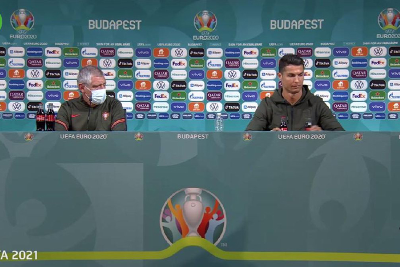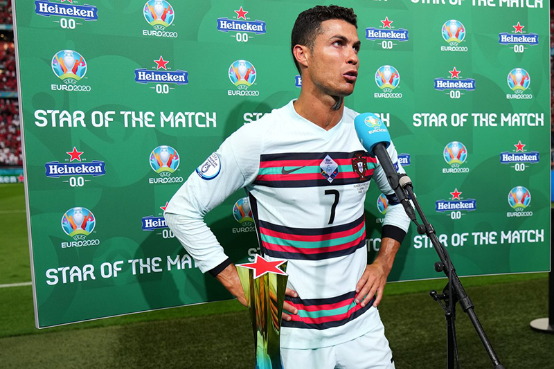 Namun bukan hanya itu saja yang menarik dari Ronaldo di laga pembuka Grup F. Aksinya yang menggeser botol minuman bersoda saat konferensi pers juga menjadi perbincangan hangat. Bahkan berpengaruh terhadap saham dari perusahaan minuman bersoda tersebut.