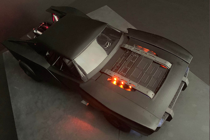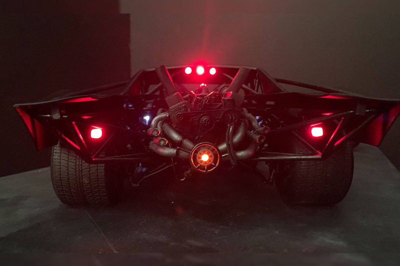 Untuk Batmobile terlihat seperti muscle car dari tahun delapan puluhan. Pada bagian belakangnya terbuka dan menampilkan mesin, serta terlihat sasis tubular yang membuat tampilannya terlihat makin kokoh. Hal lain yang cukup mencolok adalah penggunaan lampu aksesori di bagian kap mesin dan membuat cahaya keluar dari celah-celah grill yang memberikan kesan sangar.