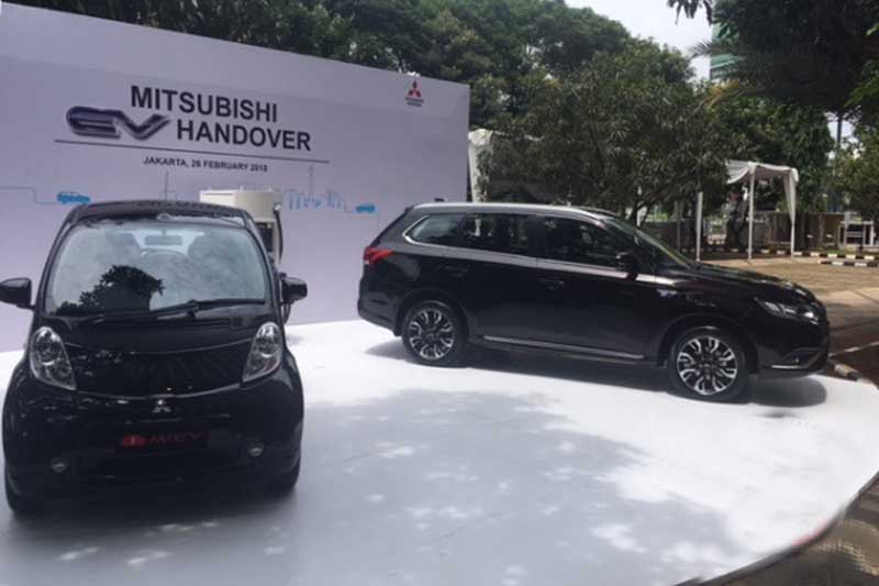 Mitsubishi Motors menyerahkan 10 kendaraan listrik kepada pemerintah Indonesia yang terdiri atas Mitsubishi Outlander PHEV yang merupakan model SUV plug-in hybrid dan kendaraan listrik i-MiEV.