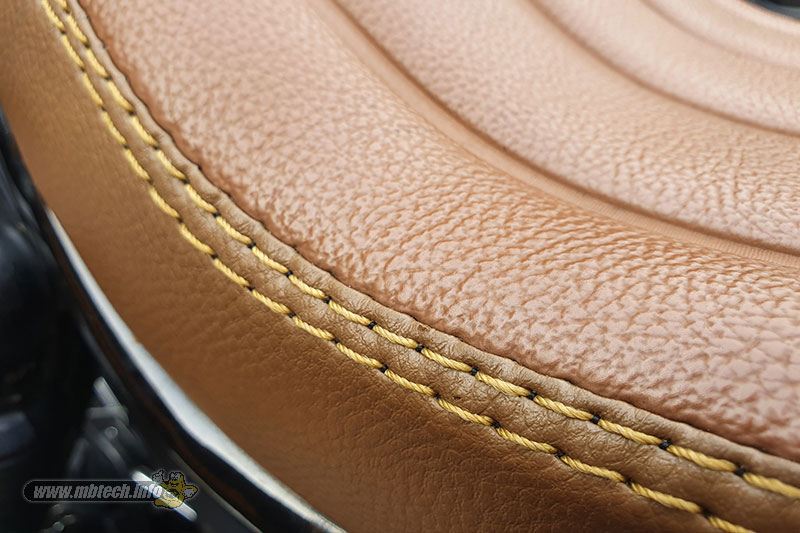 Untuk menunjang kenyamanan, bagian jok dibalut bahan berkualitas dari MBtech.