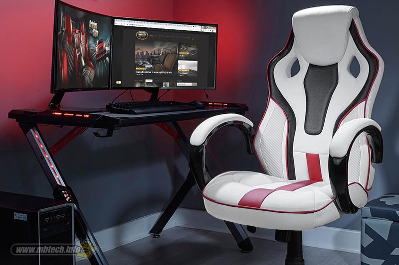 Selanjutnya, Mister MB memiliki gaming chair model lain yang permukaannya dilapisi oleh tiga warna, yakni Off White (MB 9006) dari MBtech Camaro sebagai warna dominan, lalu warna White (MBRC 2303) dari MBtech Riders sebagai aksen karbon pada bagian sandaran pinggang. Kemudian ada warna Black (MB 9001) dari MBtech Camaro pada sandaran dan pola dinamis yang dibentuk. Dilengkapi dengan warna Elegant Red (MB 9015) sebagai lis satu garis dari sandaran pinggang hingga dudukan. Warna terakhir disebut juga menjadi warna untuk piping. Keren kan?