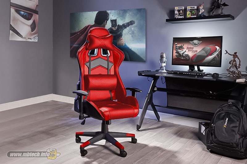 Pertama ada kursi gaming dengan dominasi warna merah yang diambil dari warna Elegant Red (MB 9015) milik MBtech Camaro dan Red (MBRC 2305) dari MBtech Riders. Nuansa tekstur karbon dari MBtech Riders membuat tampilannya semakin sporty. Selanjutnya, untuk sisi luar paha, punggung dan tengah kursi diaplikasikan warna Black (MB 9001) dari MBtech Camaro. Untuk mempercantik, pada bagian kaki kursi bisa diberikan stiker berwarna merah pada bagian ujungnya.