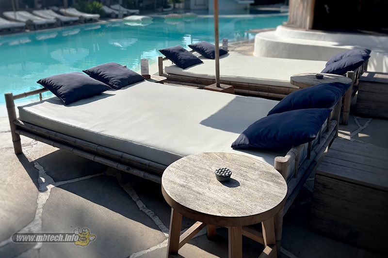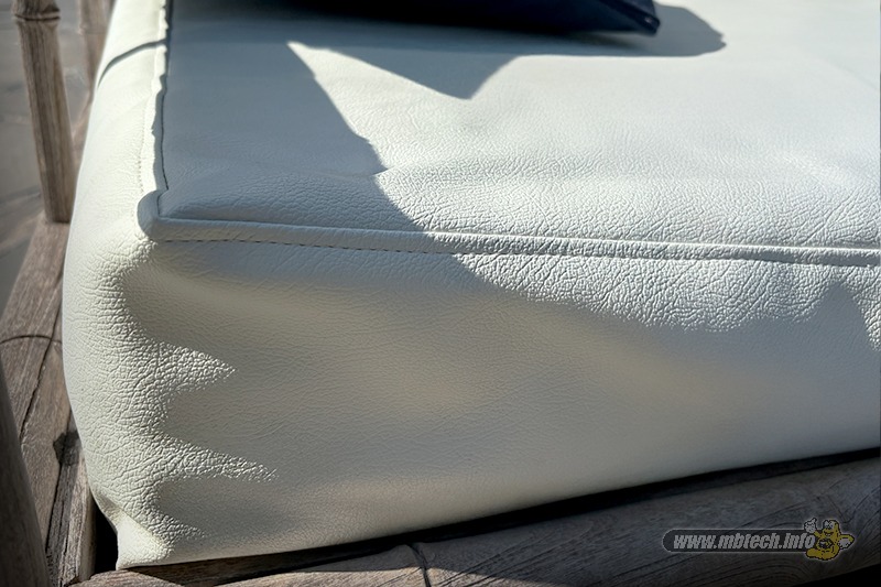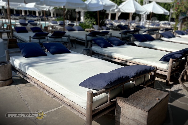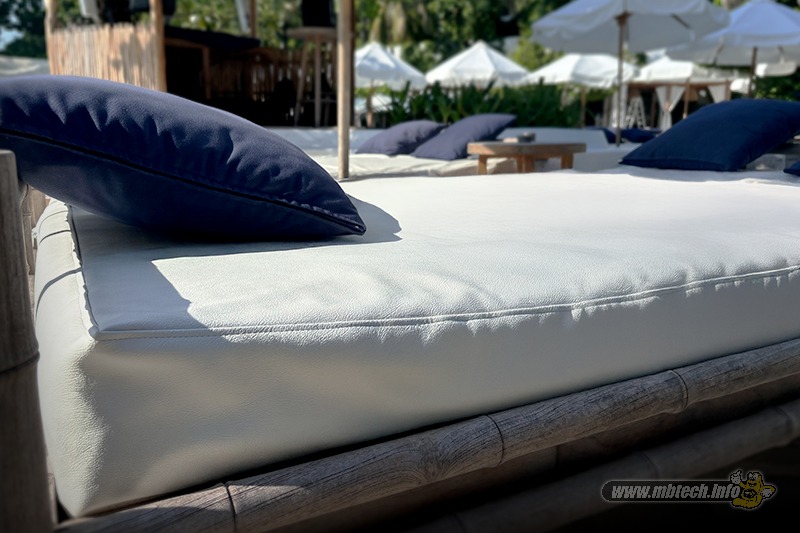 Keberadaan MBtech di daybed selain membuat nyaman pengunjung ketika berjemur, bahan ini juga teruji kualitasnya sehingga aman terkena tubuh basah pengunjung yang baru keluar kolam renang dan langsung merebahkan tubuhnya ke daybed. Jika tidak terpakai daybednya, pelapis MBtech pun aman menahan sinar UV dan ini terbukti sudah 1 tahun lebih di Mrs Sippy.