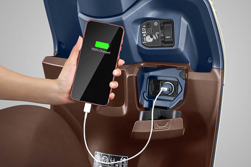 Asyiknya jok motor yang berjarak dari tanah 744 mm itu mendukung fleksibilitas rider, dan desain pelapisnya juga dibuat makin bergaya. Ubahan lain yang menarik adalah fitur power outlet di dekat kunci kontak.