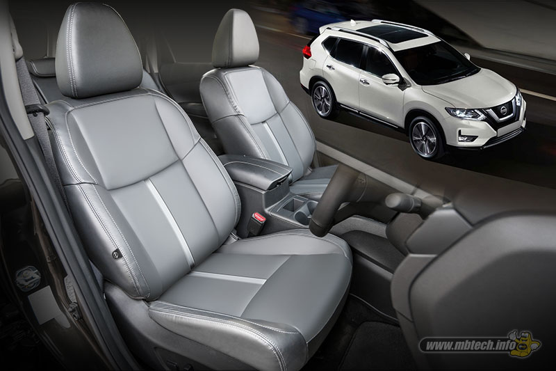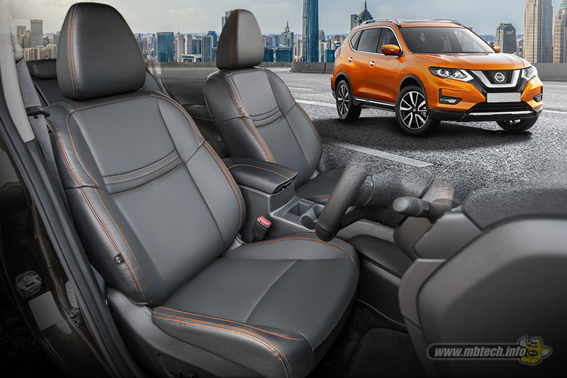 Lanjut ke X-Trail berkelir merah, maka jok dibuat monokrom suasana interiornya. Pilihan warna Grey (MBPC 1003) dari MBtech Premium-Carrera pada sekujur jok dan doortrim disandingkan dengan aksen jahitan berwarna kontras.
