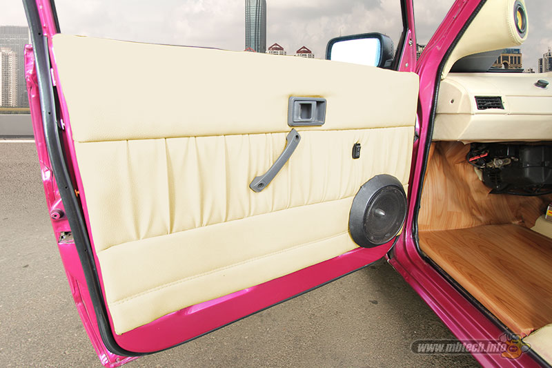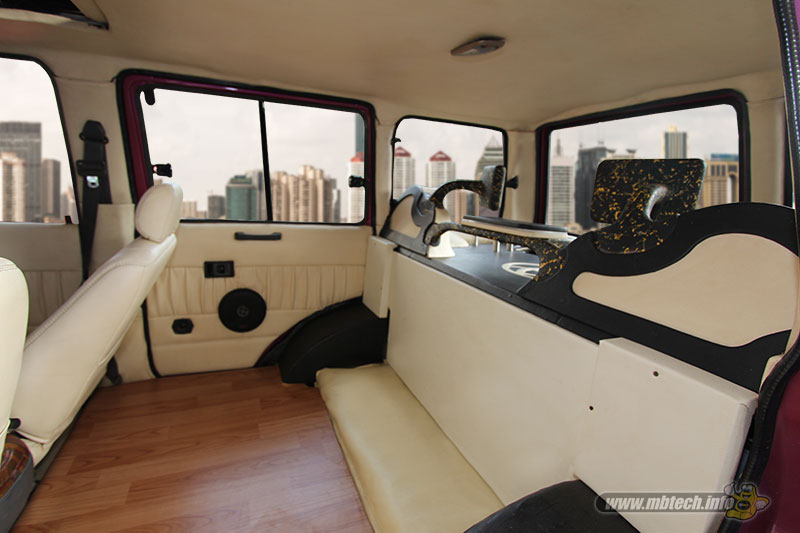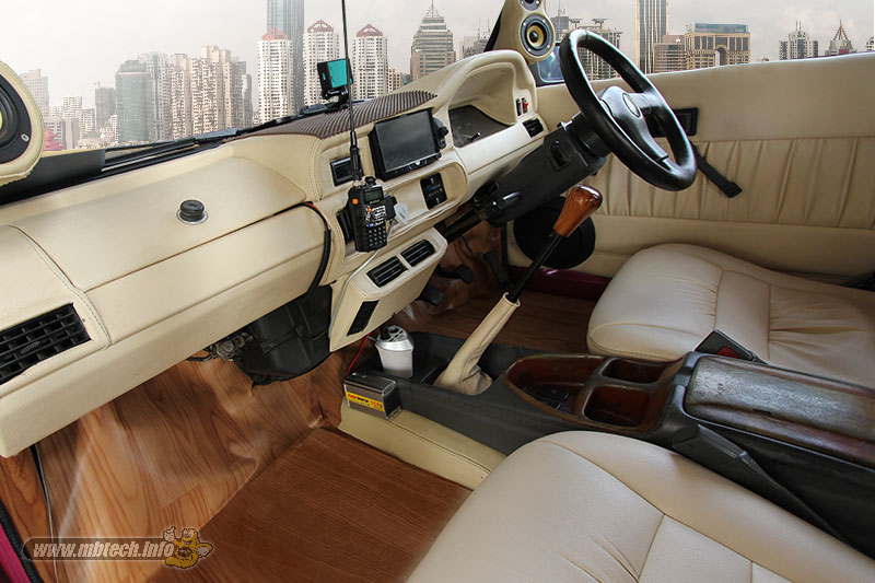 Seterusnya interior dibikin bernuansa monokrom lewat aplikasi kulit sintetis MBtech Camaro berwarna Cream (MB 9007). Warna cerah berkesan bersih itu terlihat melapis jok, doortrim, bagian dasbor, pilar atap, plafon, sarung tuas transmisi dan boks kosmetik audio di bagasi.