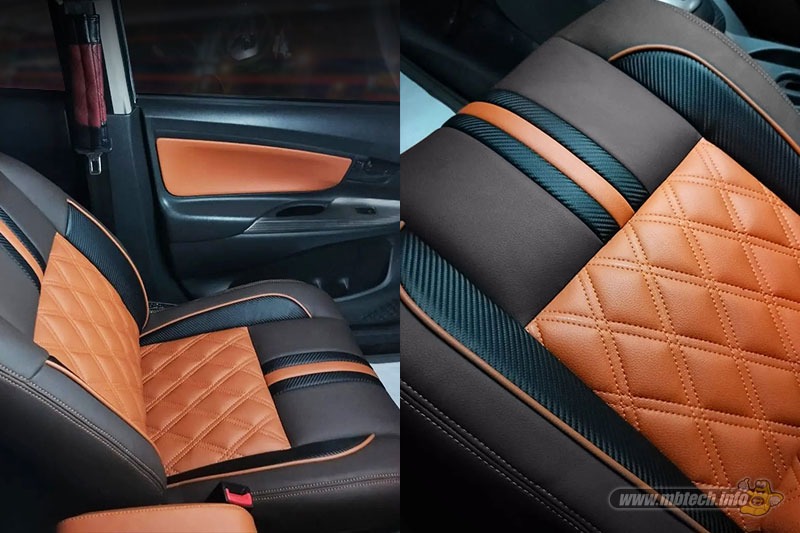 Mobil kelahiran 2012 silam itu ingin terlihat segar, maka oleh Achil selaku seatmaker diputuskan untuk mengganti suasana interior menggunakan bahan pelapis jok MBtech Camaro.