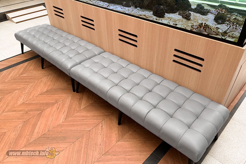 Tidak lupa sebagai tempat paling asyik untuk melihat biota laut di akuarium disediakan sebuah sofa island. Pelapis sofa bermotif kotak-kotak nan klasik itu dilapis dengan bahan berwarna Silver Grey (MB 9005) kepunyaan MBtech Camaro.
