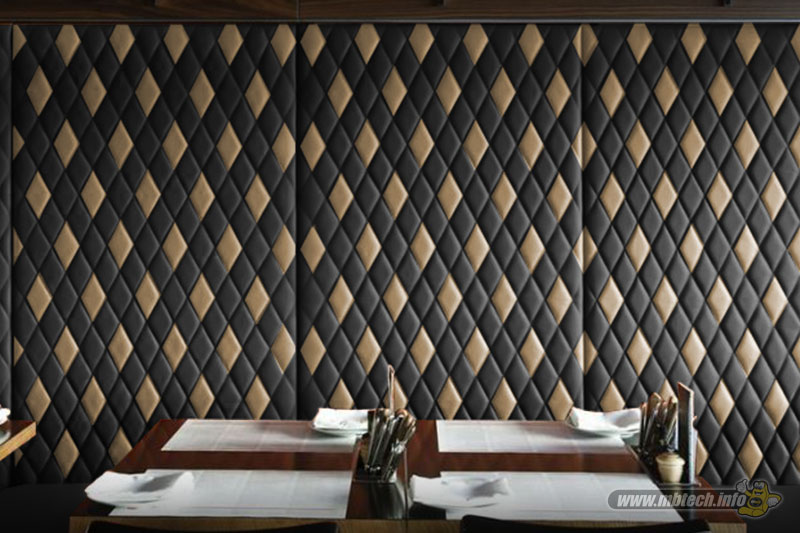 Untuk ruang tamu, ruang keluarga maupun ruang makan, Anda bisa menggunakan padded wall dengan motif wajik yang berwarna ganda ini. Padukan warna yang sesuai dengan nuansa interior Anda. Nah kali ini Mister MB memadukan warna Saddle (MB 9012) dengan Golden Beige (MB 9008) dan Black (MB 9001) dengan Golden Beige dari bahan MBtech Camaro. Hasilnya menawan bukan.