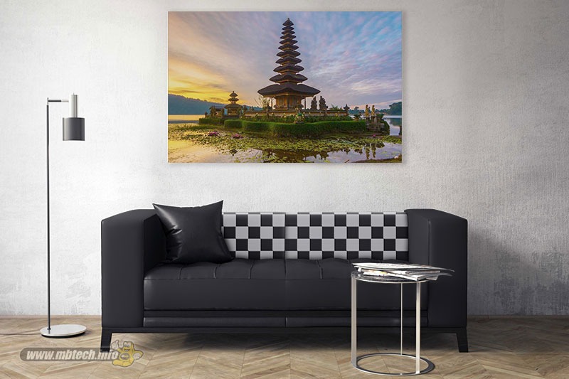 Bagi Anda yang suka dengan nuansa Bali, lukisan Pura danau Bratan bisa menjadi referensi menarik. Kaitkan nuansa Bali pada sofa dengan memberikan warna Black (MB 6001) dan Alaska (MB 6006) khas kain Poleng Bali pada sandaran sofa.