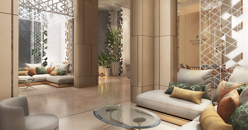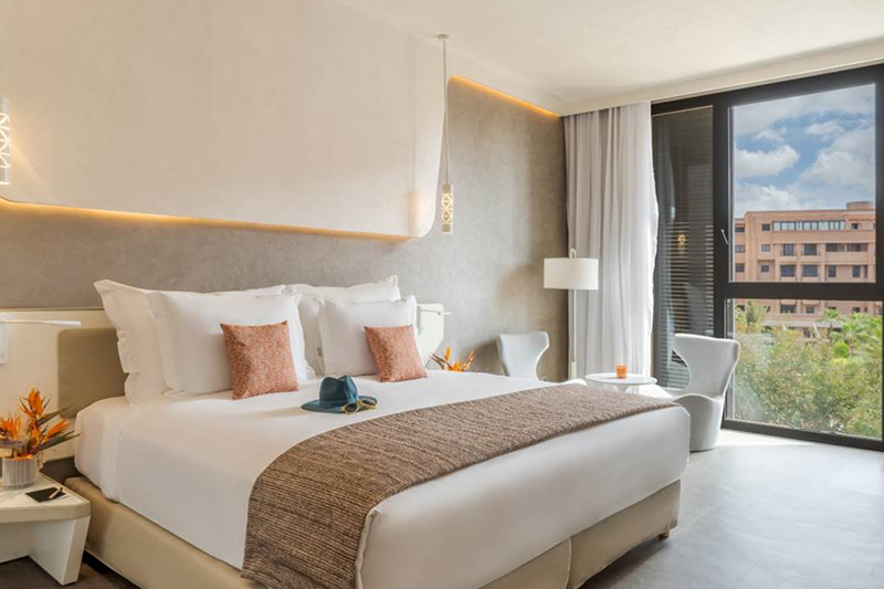 Dari puncak gedung dengan kolam renang, para tamu dapat menikmati pemandangan pegunungan Atlas yang indah. Hotel bintang empat ini juga memiliki luas 20.000 meter persegi dengan ruang komersial, sebuah pusat bisnis seluas 4.500 meter persegi, dan klinik mewah.