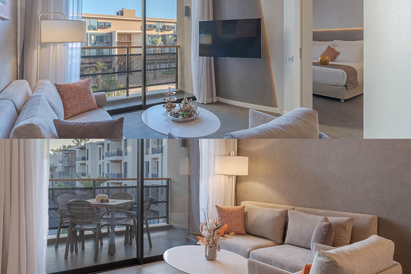 Ruang tersebut juga memilki sofa yang langsung bisa melihat keadaan luar dari pintu kaca yang tersedia. Masih ada juga balkon yang bisa dimanfaatkan untuk menikmati pemandangan sembari menghirup udara Marrakech.