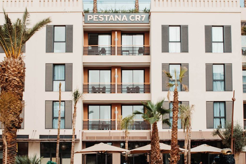 Pertama ada hotel Pestana CR7 di Marrakech yang merupakan kota di Maroko. Hotel ini baru diresmikan pada Maret 2022 lalu. Terletak di lingkungan kelas atas dan mewah, hotel ini memiliki tarif menginap per kamarnya mulai 158 - 423 euro (Rp 2,5 juta hingga Rp 6,8 juta) per malam.