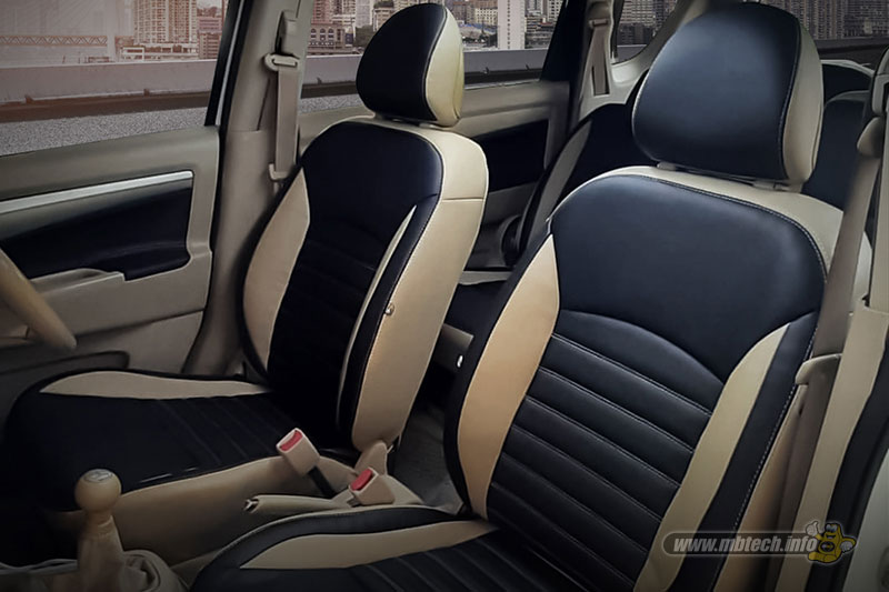 Made Ali selaku seatmaker merealisasikan keinginan customer dengan melapisi jok mobil tersebut menggunakan bahan MBtech Camaro. Adapun warna yang digunakan adalah perpaduan warna Black (MB 9001) dan Beige (MB 9009). Untuk jok diberikan motif garis-garis horizontal.