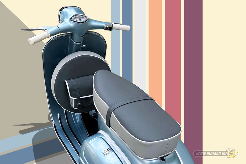 “Saya mengikuti warna Vespa milik om Zidny yang berkelir biru cerah dan biar terlihat joknya, maka dilapis bahan berwarna Grey (MB 9003) di permukaan dan Silver Grey (MB 9005) untuk sisi samping jok dan cover ban serep,” imbuhnya.