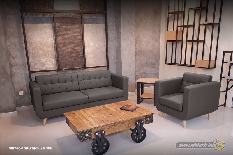 Melalui hasil karya dari Samudra Jaya Banjarmasin, Mister MB turut menghadirkan beberapa inspirasi warna sofa dengan bahan MBtech Giorgio yang bisa dijadikan referensi. Mister MB mengaplikasikan warna Smoke (MB 6016) agar lebih menyatu dengan dinding unfinished. Selanjutnya bisa menggunakan warna Ginger (MB 6020) jika ingin warna yang lebih natural.