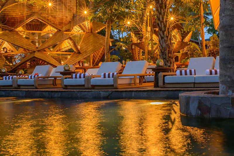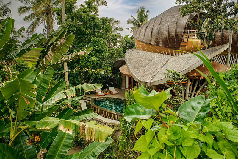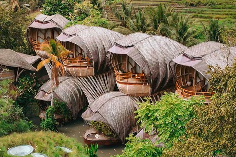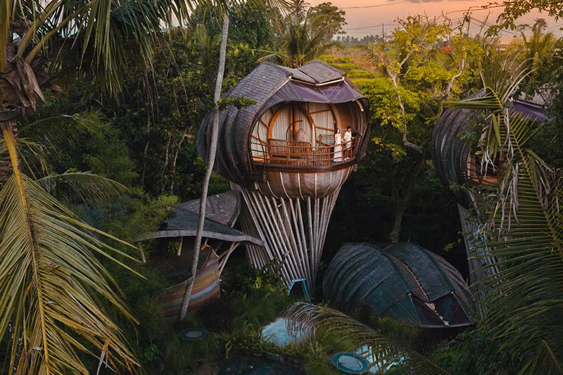 Resort bernuansa alam ini mempunyai ciri khas desain arsitektur yang indah memakai bangunan terbuat dari bambu dan kayu. Serunya, villa di Ulaman dibuat seperti rumah burung. Tak heran resort ini banyak meraih penghargaan internasional.