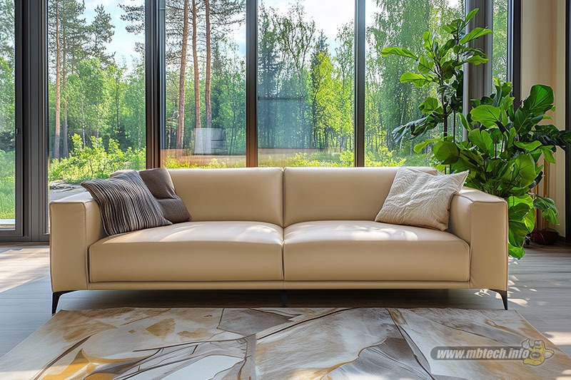 Anda dapat menggunakan rangka sofa yang terbuat dari kayu dan juga memakai busa tebal dengan densiti yang cukup agar posisi duduk kian nyaman. Lalu pilih warna pelapis sintetis sofa yang bernuansa natural.