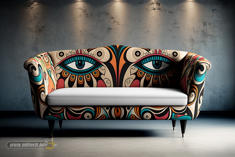 Seperti inspirasi dari Mister MB berikut yang menampilkan gambar seni sebagai motif sofa.
