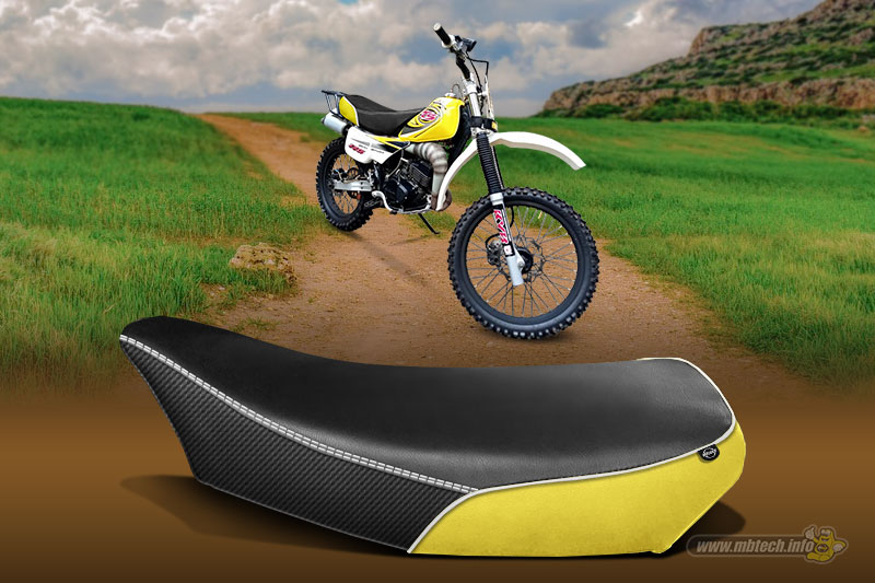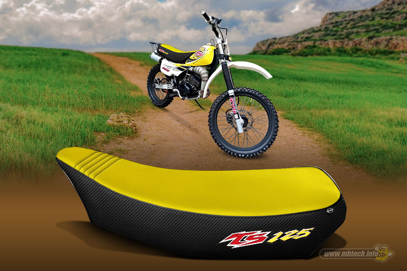 Mengambil warna bodi motor TS125 yang bernuansa kuning, hitam dan putih, Mister MB berinisiatif menerapkan warna tersebut pada jok. Untuk bagian atas jok dibalut warna Black (MB 9001) dari MBtech Camaro. Lalu untuk sisi samping menggunakan tekstur karbon warna Black (MBRC 2301) dari MBtech Riders dan diberi jahitan benang warna kuning sebagai pemisah.