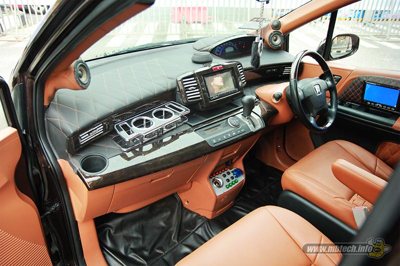 Kemudian widebody fender depan 3 cm dan belakang 5 cm dikerjakan untuk menampung velg SSR Viena 3 pieces construction 18x10+11,5 inci. Tentu saja lebar velg ini jadi masalah buat Freed yang pintu tengahnya model sliding. “Pintu tengah dirubah jadi model suicide, lebih cocok dengan tema elegannya,” bilang Andra selaku konseptornya. Aman !