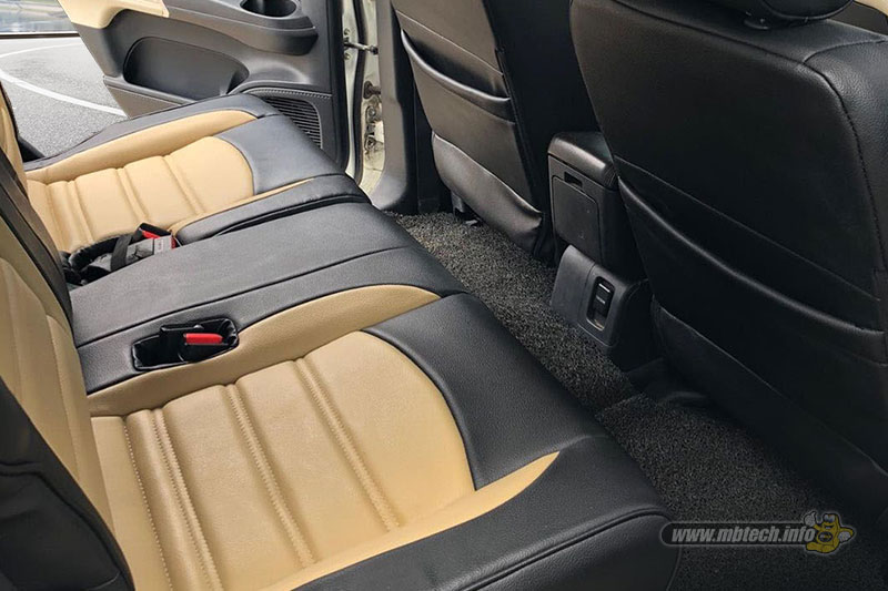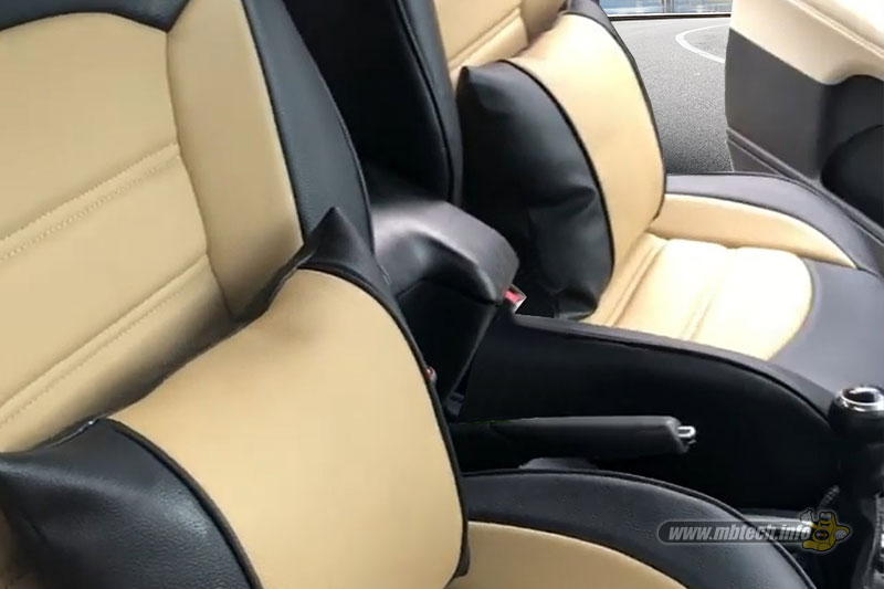 Warna yang digunakan adalah perpaduan warna Black (MBPC 1001) dan Champignon (MBPC 1007) dari bahan MBtech Premium – Carrera. Untuk bagian jok dibuatkan motif garis-garis pada bagian tengah. Dan diberikan tambahan bantal dengan warna senada. Jadi makin menawan kan.