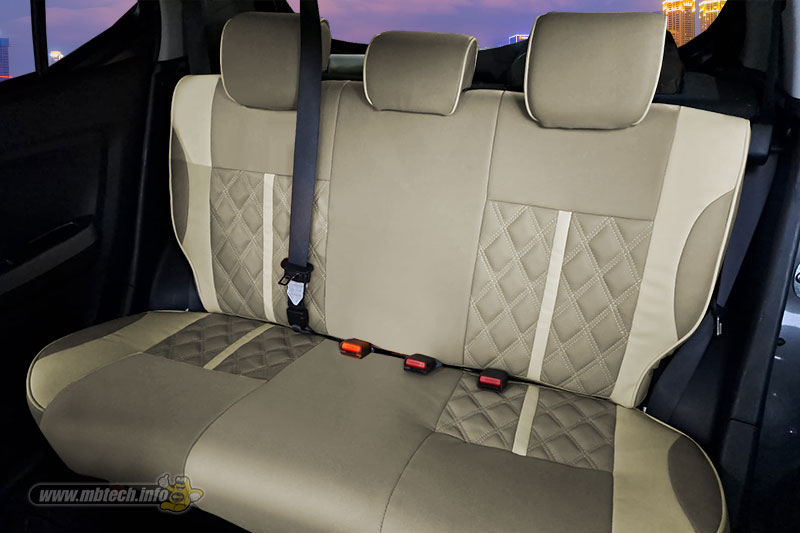 Waluyo selaku seatmaker berhasil merancang dan merealisasikan keinginan si pemilik mobil. Bahan MBtech Camaro jadi pilihan dengan mengkombinasikan warna Champignon (MB 9010) dengan Cream (MB 9007).