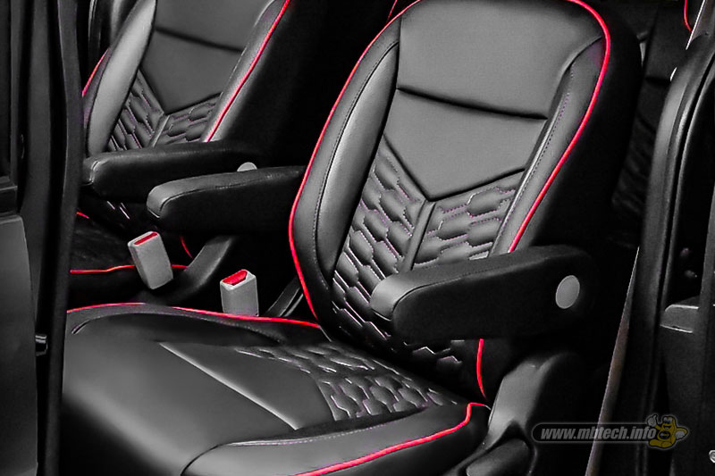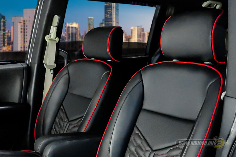Proses modifikasi interior yang dikerjakan cukup serius, Iwan tak hanya menggarap jok maupun doortrim. Bagian pilar, stir dan plafon ikutan dilapis kulit sintetis MBtech Premium-Carrera berwarna Black (MBPC 1001).