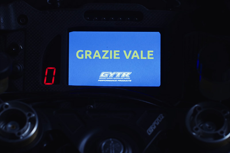 Selain sebagai tanda terimakasih untuk Rossi yang sudah berkarir di MotoGP bersama Yamaha, maka motor supersport Yamaha R1 disulap menjadi model edisi khusus dengan livery khas Rossi karya Aldo Drudi.